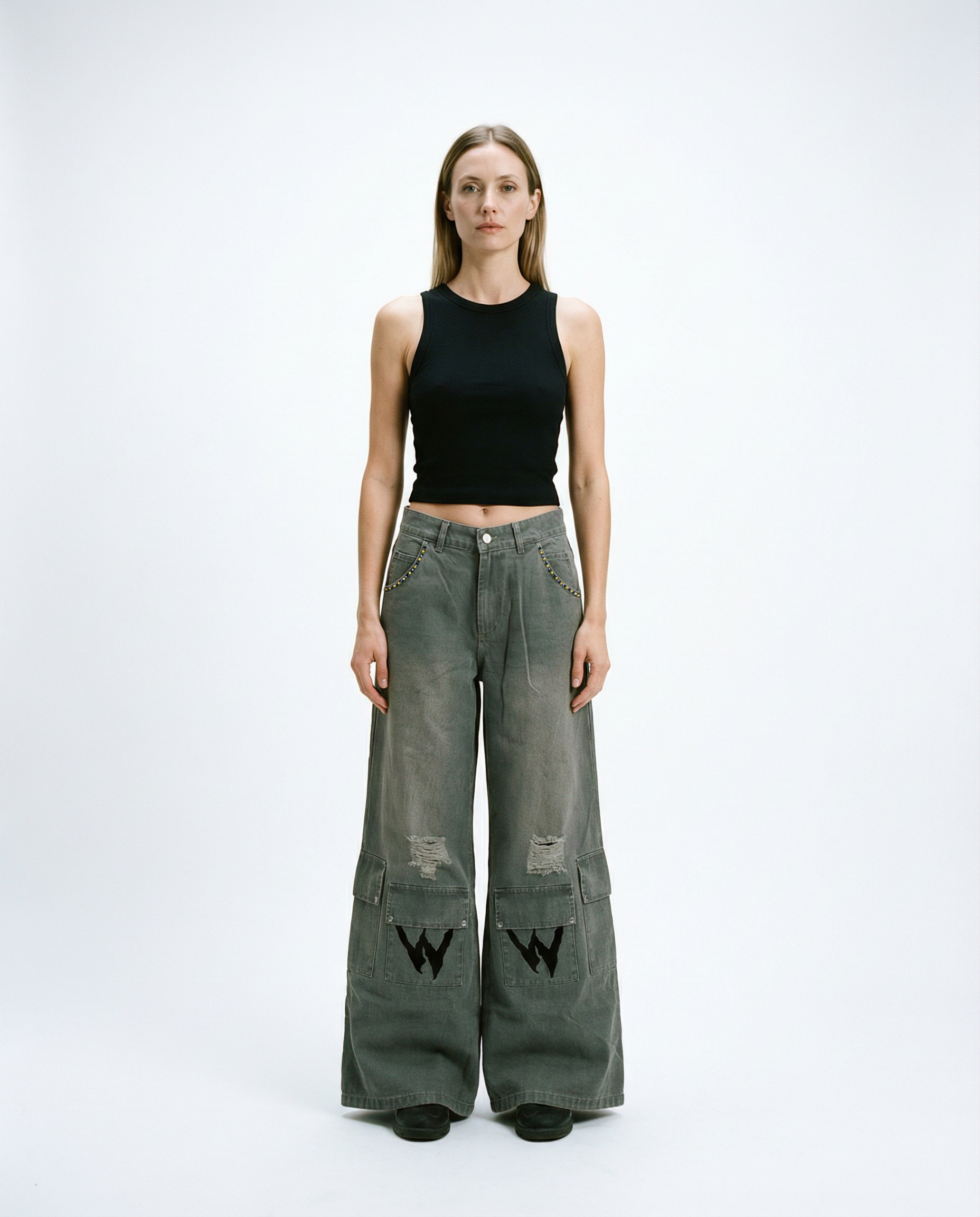 EACH PAIR IS WASHED WITH CUSTOM EMBROIDERY
