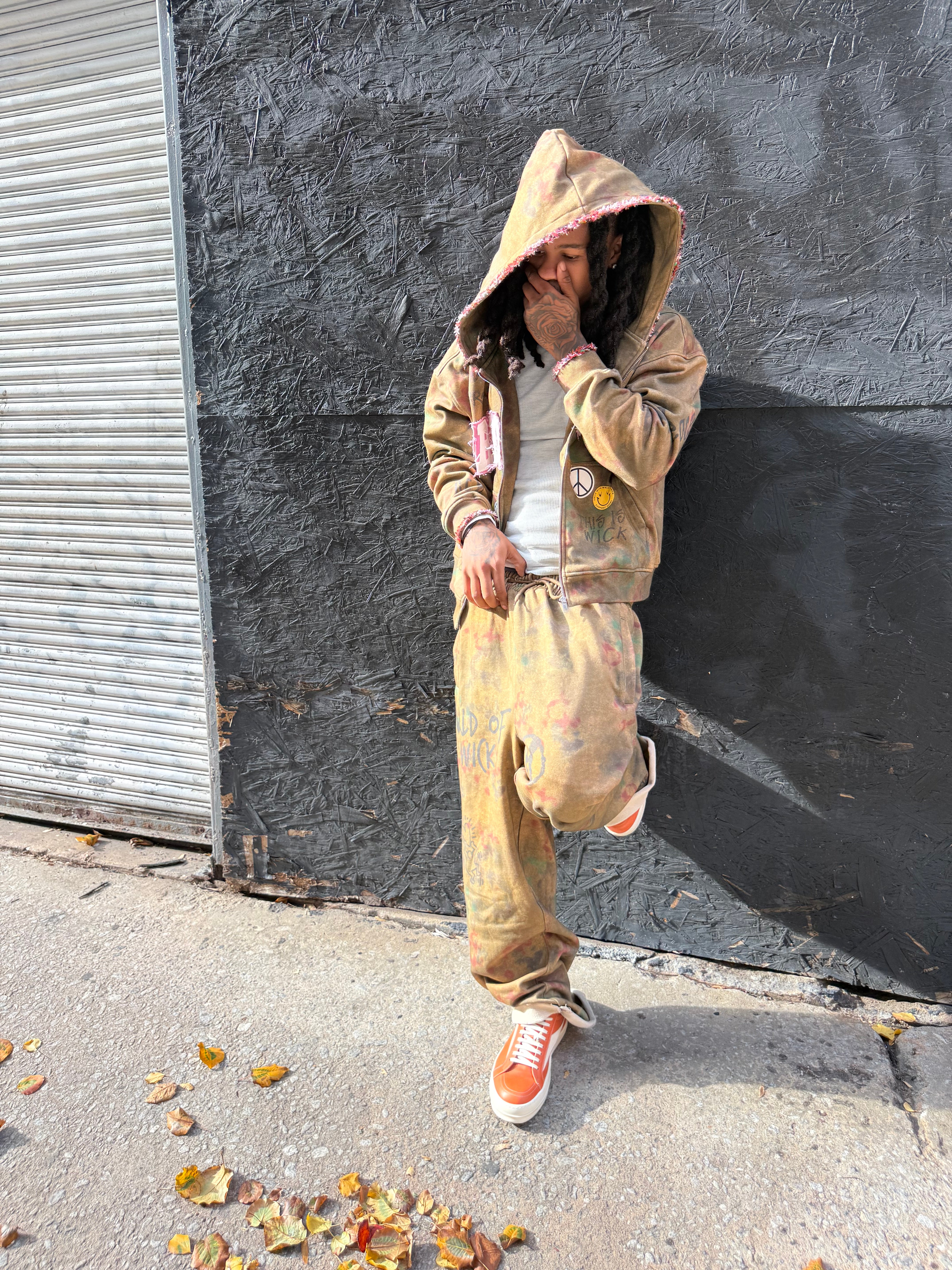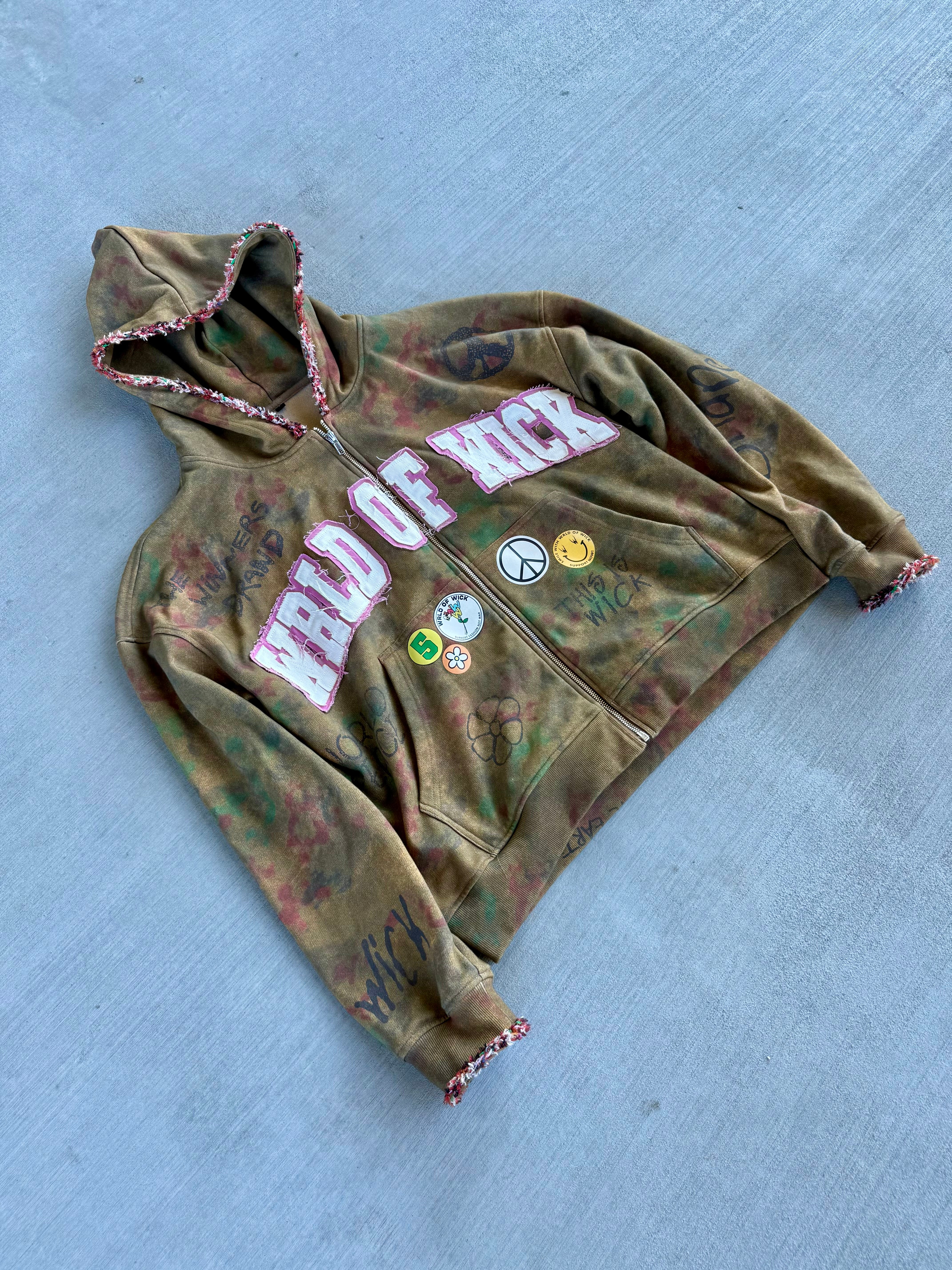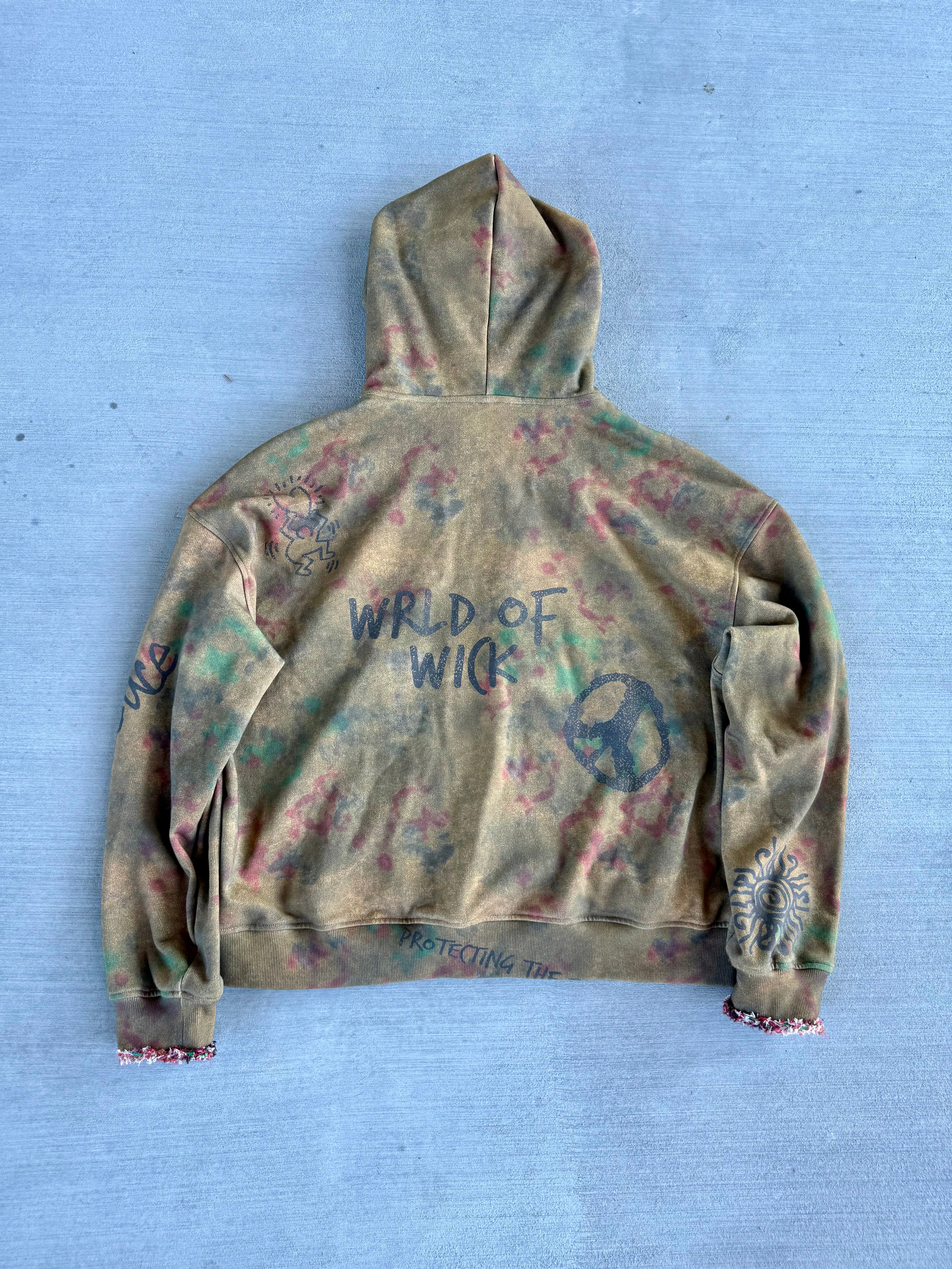 Vintage-inspired hoodie with WICK's modern streetwear edge. Features include washed navy and bone tones, distressed details, and cracked print graphics. The textured appliqué finish creates authentic character in every piece.