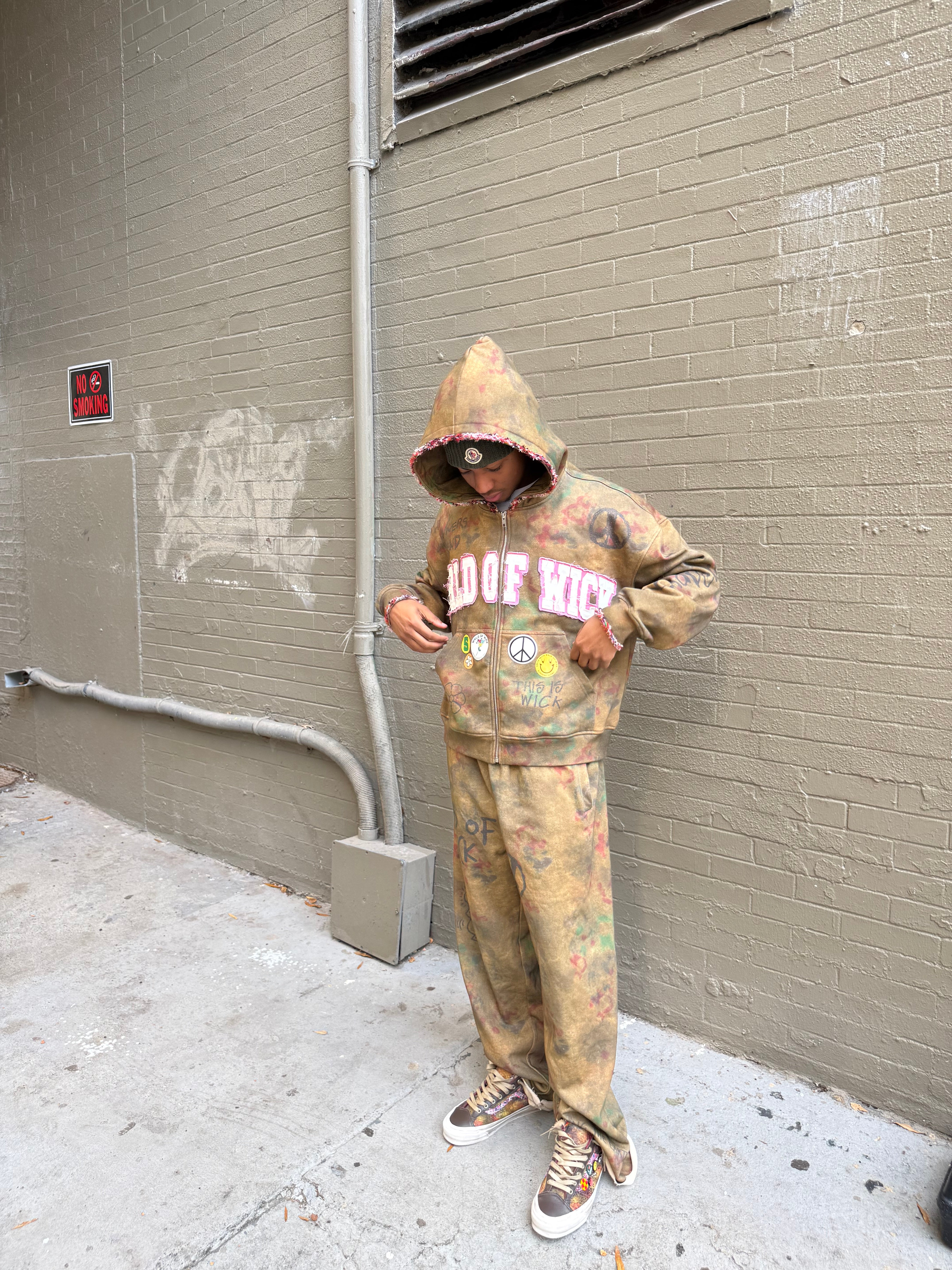 Built for the ones who move different, the WICK “Peace Camo” Sweatpants blend raw streetwear energy with an earthy, hand-crafted aesthetic. Featuring a custom camo wash, each pair has its own unique look — no two are exactly the same.